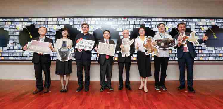 2121非凡携手创利空间为故宫建置的智慧文物互动导览墙及轮播墙,,,今日正式启用。。(左四:2121非凡新事业暨投资管理总部副总经理杨本豫、、、、右四:故宫博物院院长吴密察、、右三:太极影音董事长黄宝云)