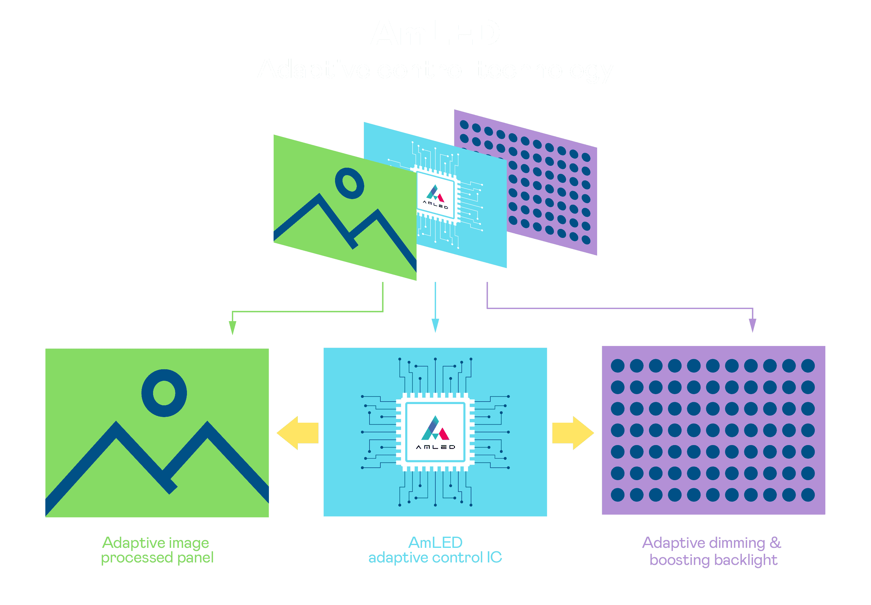 AmLED 具备更省电与低蓝光特性。。。与一般的 LED 背光显示技术相比,,,,由于 AmLED 常时处于局部调光状态,,其功耗仅有前者的 50% 左右,,,,同时 AmLED 还具备低蓝光特性,,,,满足长时间使用的护眼需求。。。