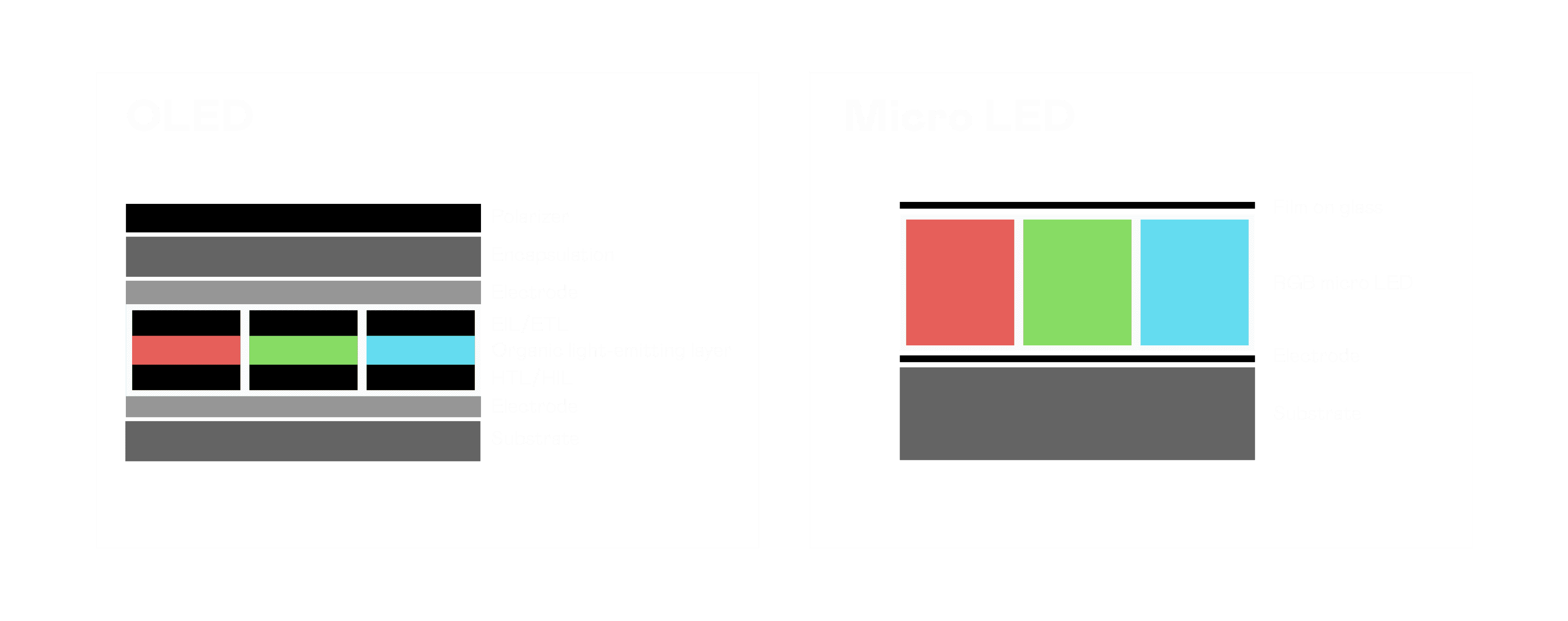 以 LED 做为显示画素,,可让 LED 的发光效率发挥到极致,,,从而让显示器具备优异的亮度表现,,,不论是在户外或室内,,均具备出众的显示效果。。同时,,,,与使用有机材料的 OLED 相比,,LED 具备更稳定、、、寿命更长的特性,,不仅不会有画面烙印问题,,,,而且更不容易出现故障、、坏点。。